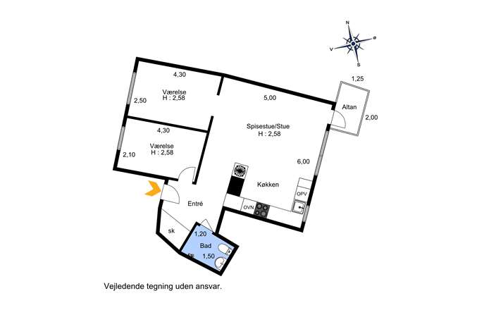 Delevenlig 3V'er med sydvendt altan nær Damhussøen og Damhustorvet!