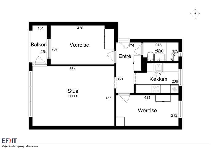 Når du træder ind i lejligheden, bydes du velkommen i en rummelig entré med indbygget skabsplads, der giver praktisk opbevaring til overtøj og sko. Herfra fordeler boligens rum sig på en funktionel og gennemtænkt måde. Køkkenet fremstår pænt og charmerende med flotte, farvede fronter og gode arbejdsflader, som gør madlavningen til en fornøjelse. Stuen er lys og indbydende med store vinduespartier, der lukker dagslyset flot ind og skaber en varm og behagelig atmosfære. Rummet har en rigtig god størrelse med plads til både spiseafdeling og sofahjørne, hvilket gør det til boligens naturlige samlingspunkt for hyggelige stunder med familie og venner. Herfra er der direkte udgang til en vestvendt altan, hvor du kan nyde solen både eftermiddag og aften og udsigten over de grønne områder bag ejendommen. Lejligheden rummer to gode værelser. Det største værelse egner sig oplagt som soveværelse, mens det andet giver fleksible indretningsmuligheder som kontor, hobbyrum eller børneværelse – alt efter behov. Badeværelset er indrettet med brusekabine og farvede fliser, som tilfører rummet personlighed og karakter.