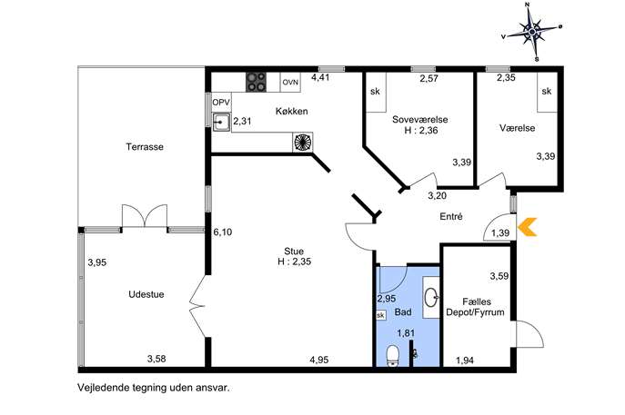 Der er endvidere fælles fyrrum/depotrum med nabo. Ny fjernvarmeinstallation fra 2024. Lille haveskur og parkeringsplads. Ugenert syd-/vestvendt have på ca.400 m2.