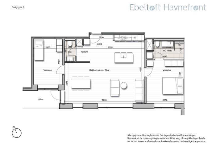 Boligerne indrettes overvejende som 2, 3 og 4 værelseslejligheder. Variationen i boligernes størrelser og indretning imødekommer beboere med forskellige behov og ønsker, ikke mindst for beboersegmentet 50+. Der er lagt vægt på at skabe gode solfyldte og lyse boliger, hvor alle har udsigt til vand, by og natur. Boligernes rum er desuden tilpasset og placeret, så der dels er god indbyrdes kontakt imellem dem, og så de gennem livet og over tid kan tjene forskellige formål; Hjemmekontor, spiserum, soverum, bibliotek, hobbyrum, gæsteværelse m.v.