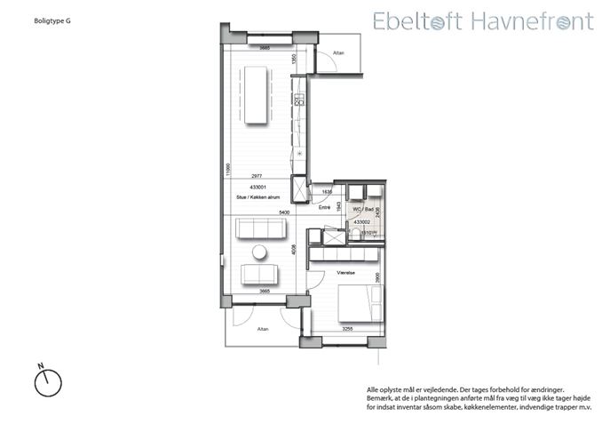 Boligerne indrettes overvejende som 2, 3 og 4 værelseslejligheder. Variationen i boligernes størrelser og indretning imødekommer beboere med forskellige behov og ønsker, ikke mindst for beboersegmentet 50+. Der er lagt vægt på at skabe gode solfyldte og lyse boliger, hvor alle har udsigt til vand, by og natur. Boligernes rum er desuden tilpasset og placeret, så der dels er god indbyrdes kontakt imellem dem, og så de gennem livet og over tid kan tjene forskellige formål; Hjemmekontor, spiserum, soverum, bibliotek, hobbyrum, gæsteværelse m.v.