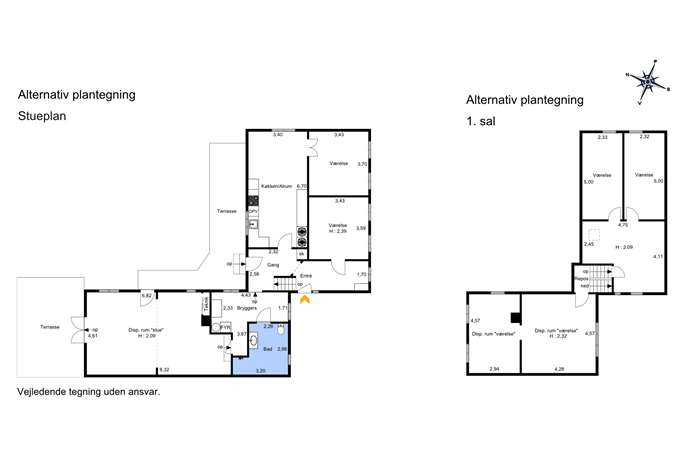 Den alternative plantegning giver mulighed for at indrette op til seks "værelser", uden at gå på kompromis med opholdsrum og hygge – perfekt til den store familie, der ønsker både plads og fleksibilitet.