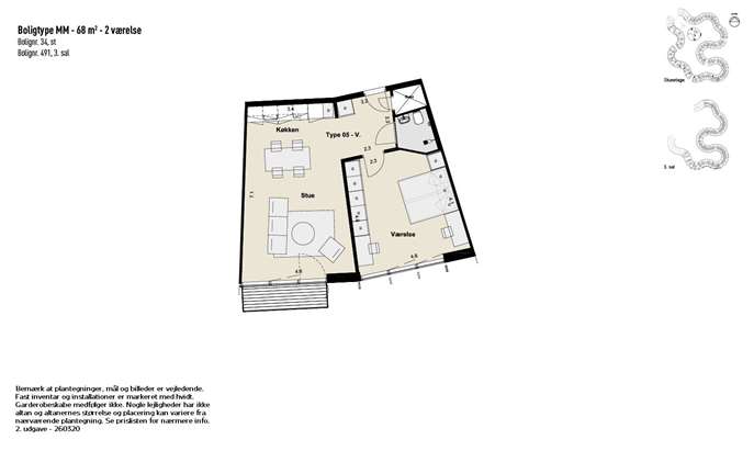 2/1 rum, 68 m²